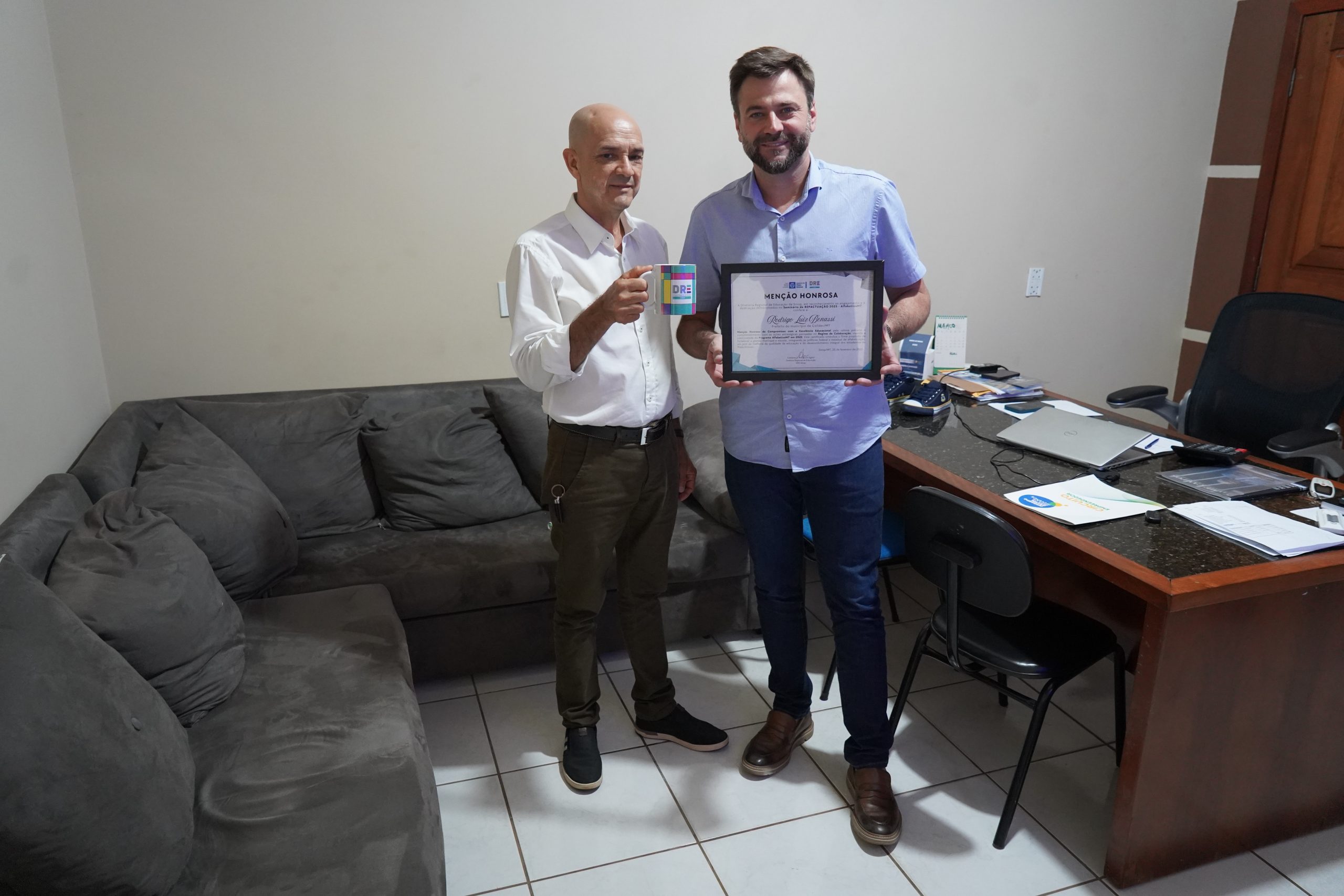 O prefeito de Colíder, Rodrigo Benassi, foi homenageado pela Diretoria Regional de Educação (DRE) de Sinop com uma Menção Honrosa, em reconhecimento ao seu compromisso com a educação municipal e a parceria no programa Alfabetiza MT.